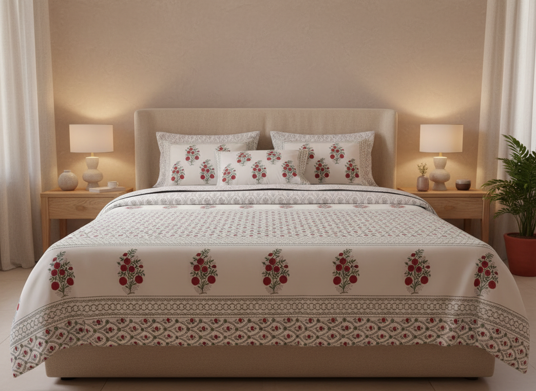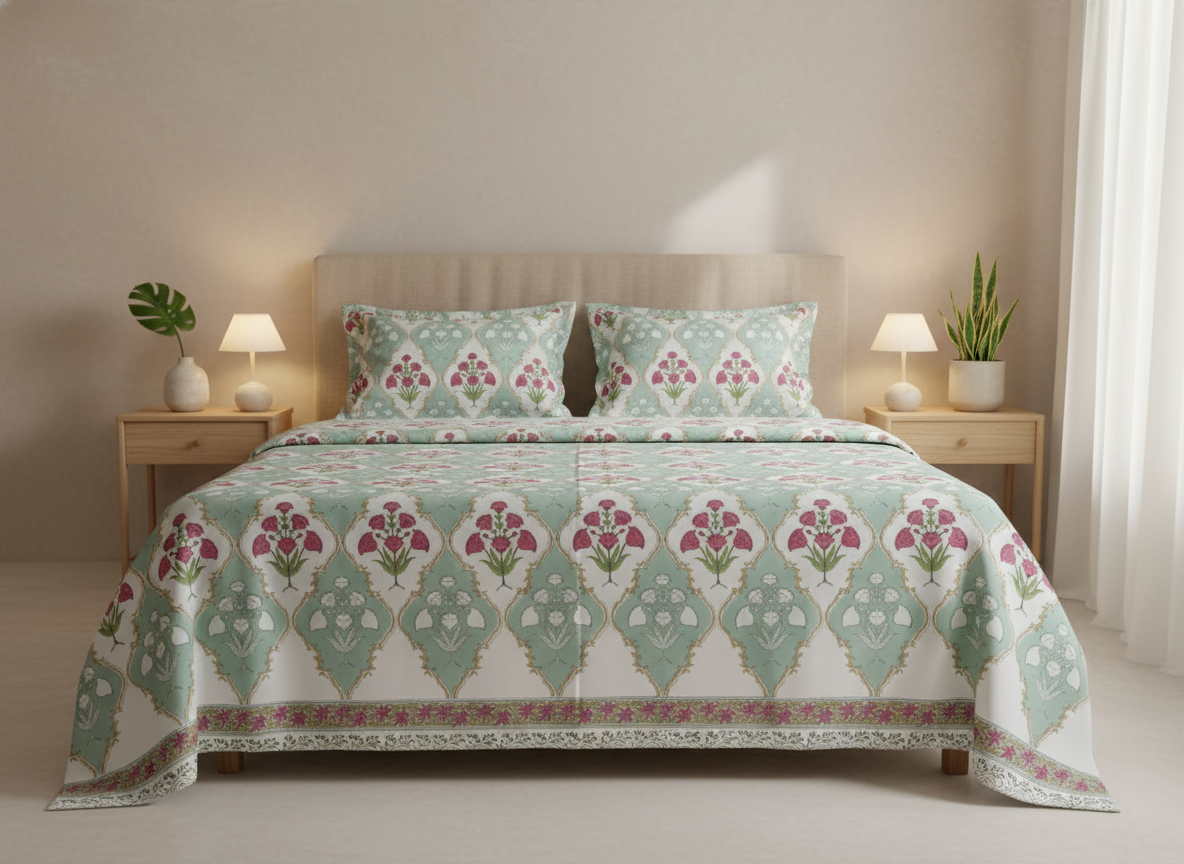 Bagh-e-Gul Blockprint Percale Cotton King Size Bedsheet | 450 TC