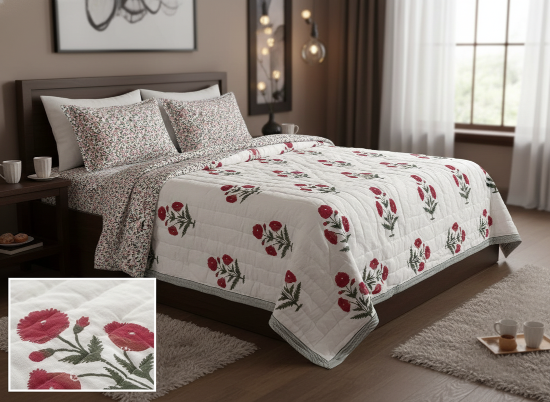Poppy Comfort Hand Block Printed Premium Reversible Quilt
