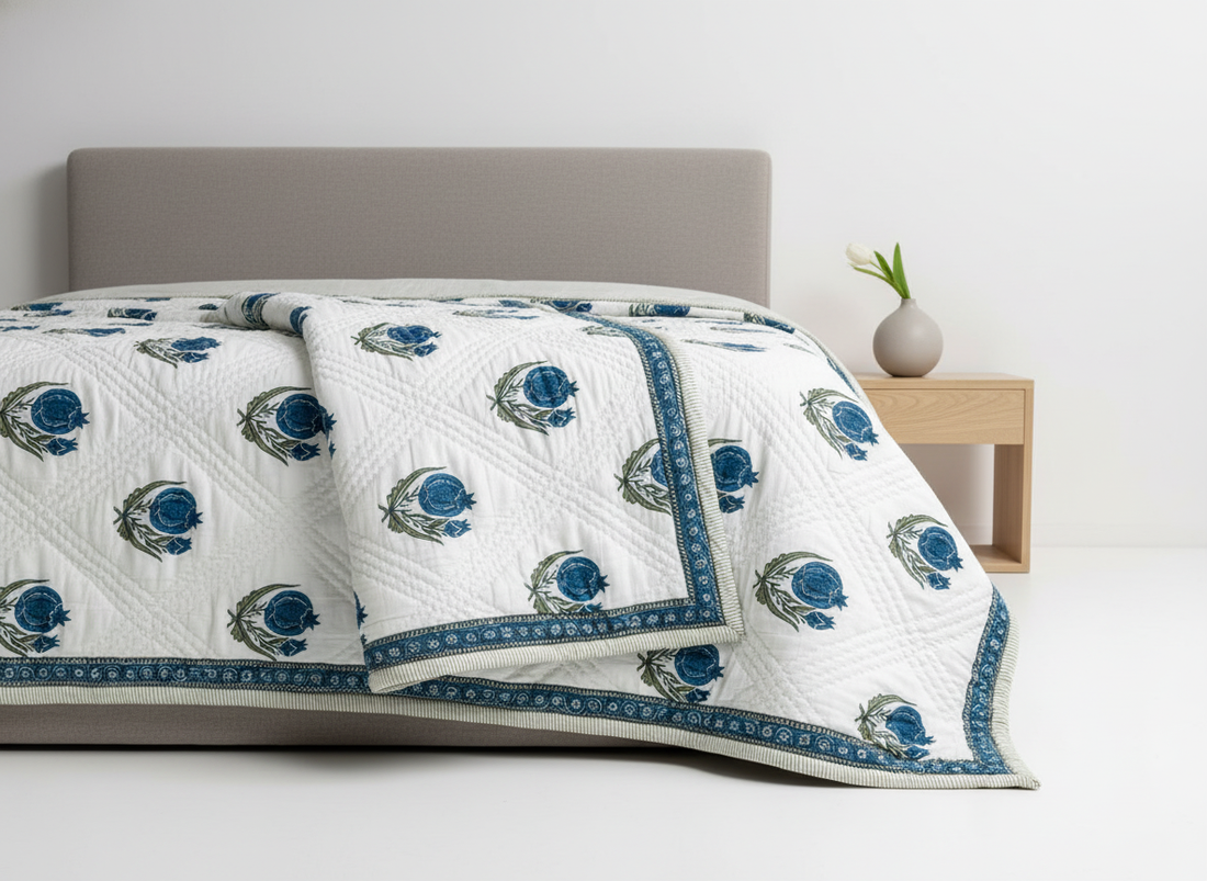 Serene Bloom Hand Block Printed Premium Reversible Quilt