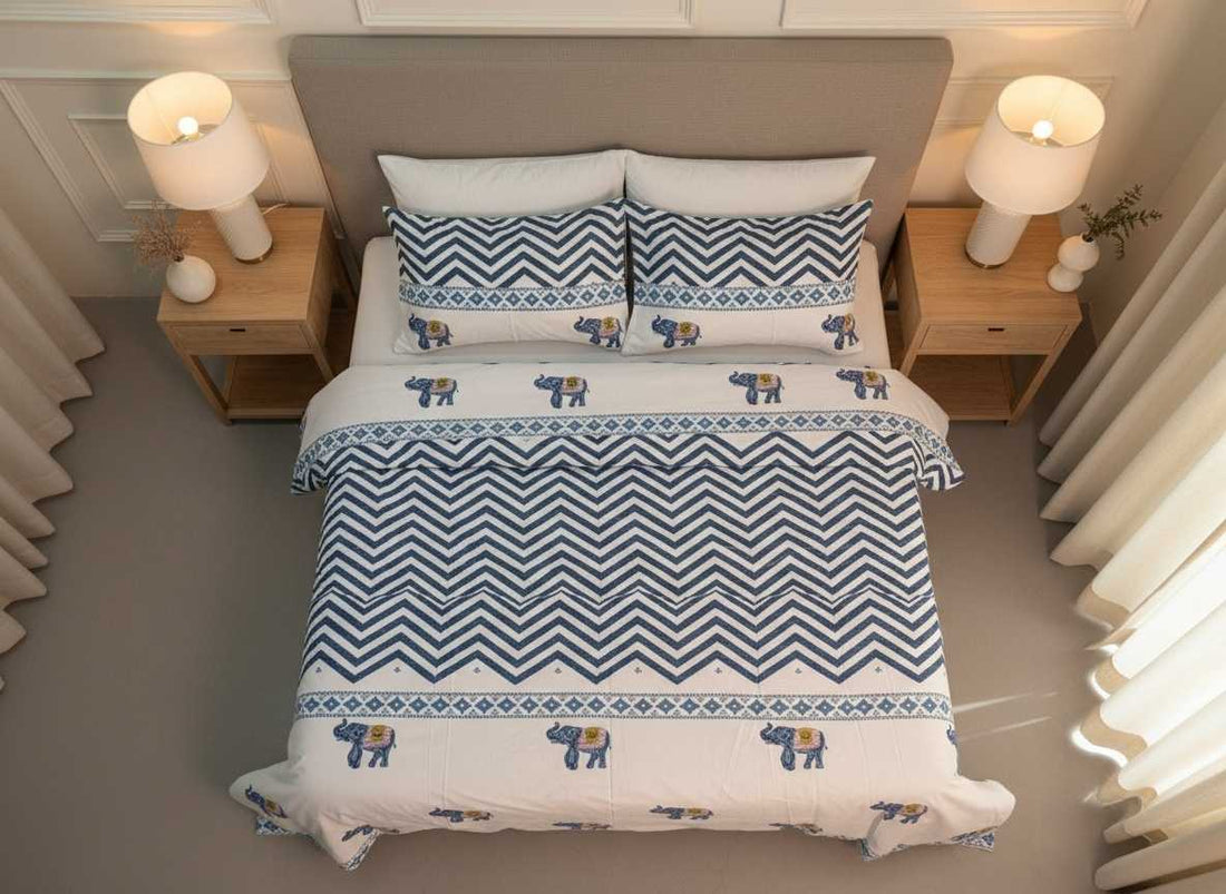 Sustainable Luxury Bedsheet Set Key Features: Hand block printed by skilled artisans of Jaipur Made...