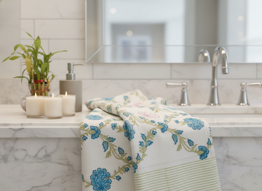 Luxurious Waffle Bath Towel 🛀Elevate your bathing experience with our exquisite waffle hand block print...