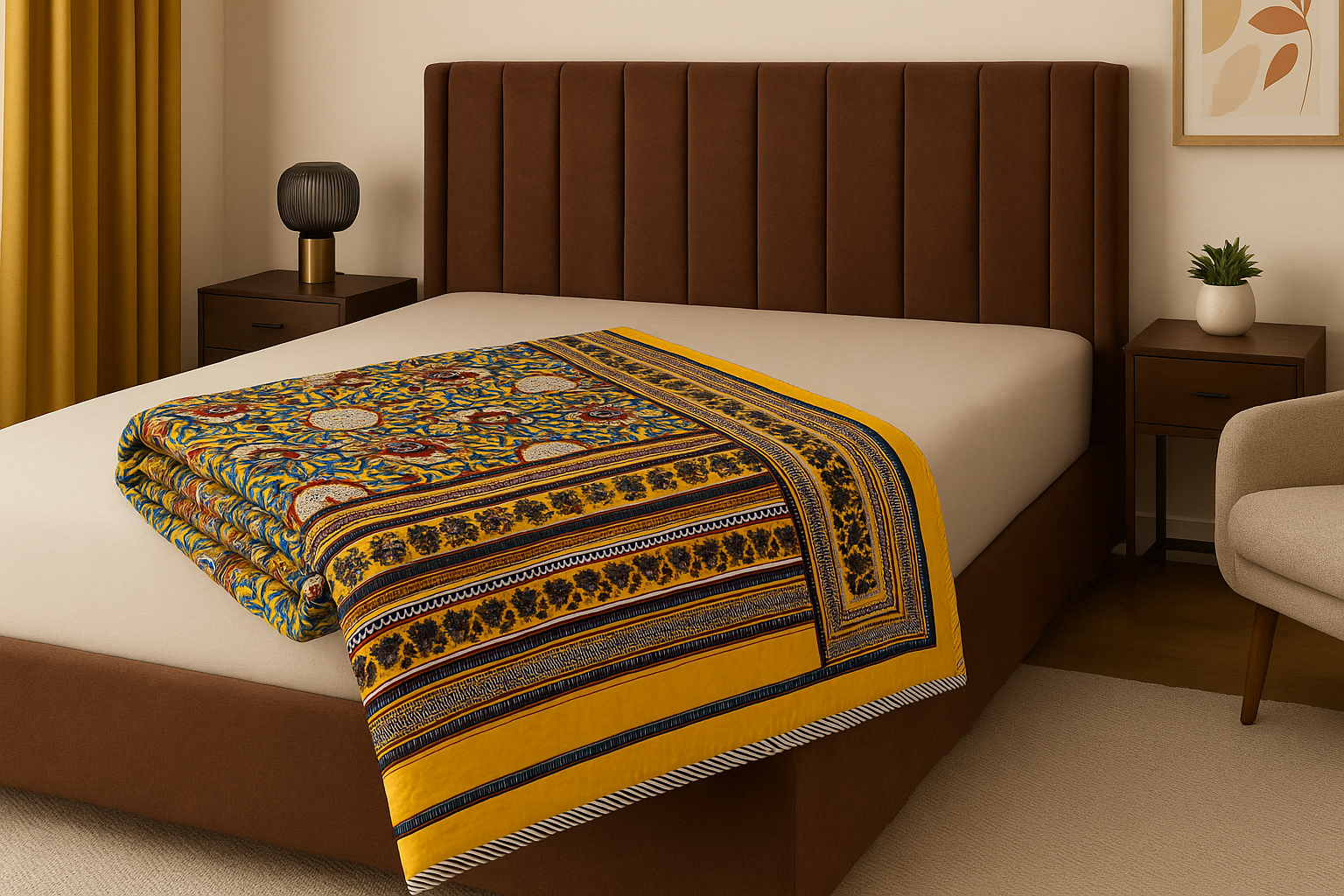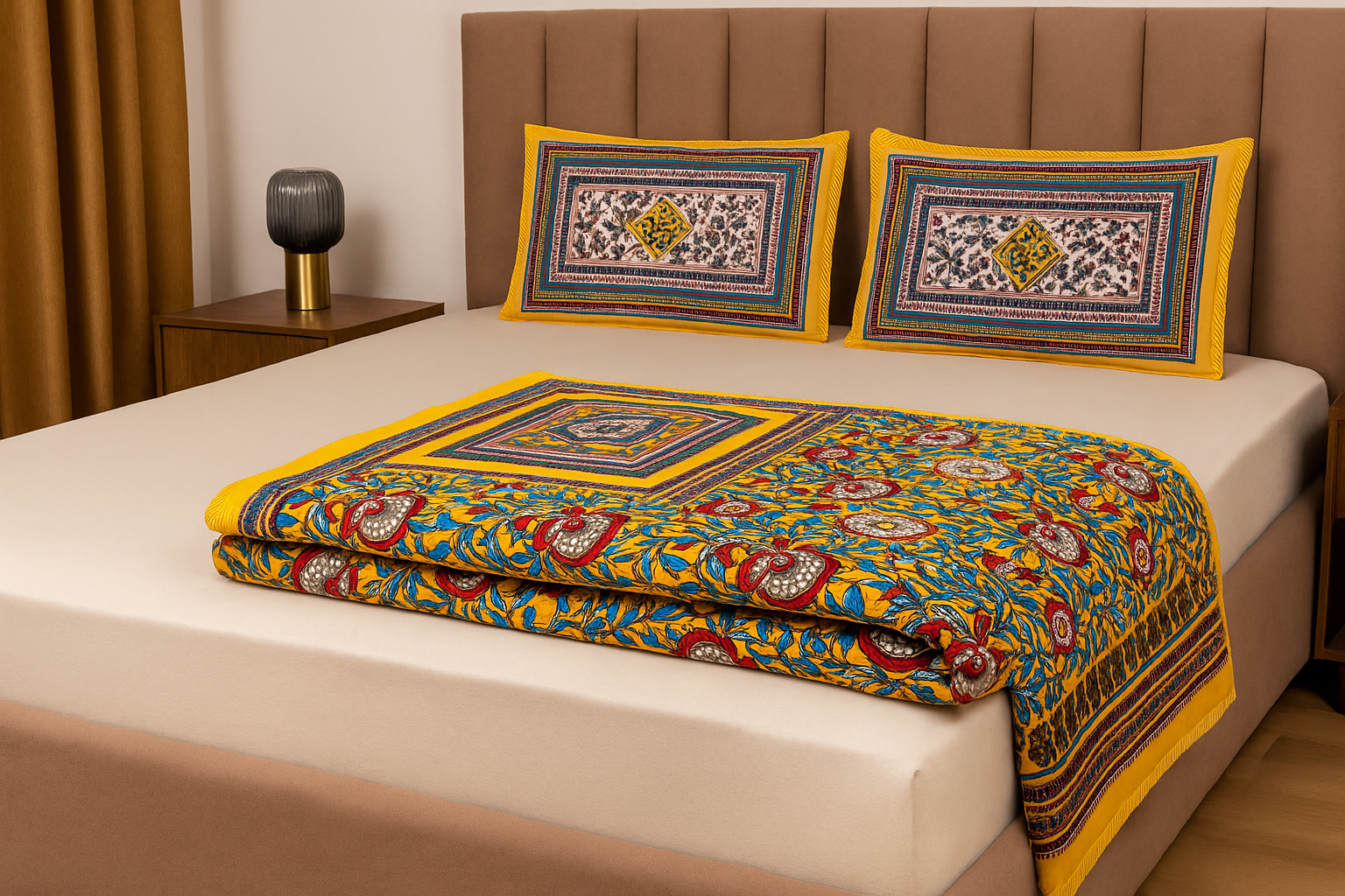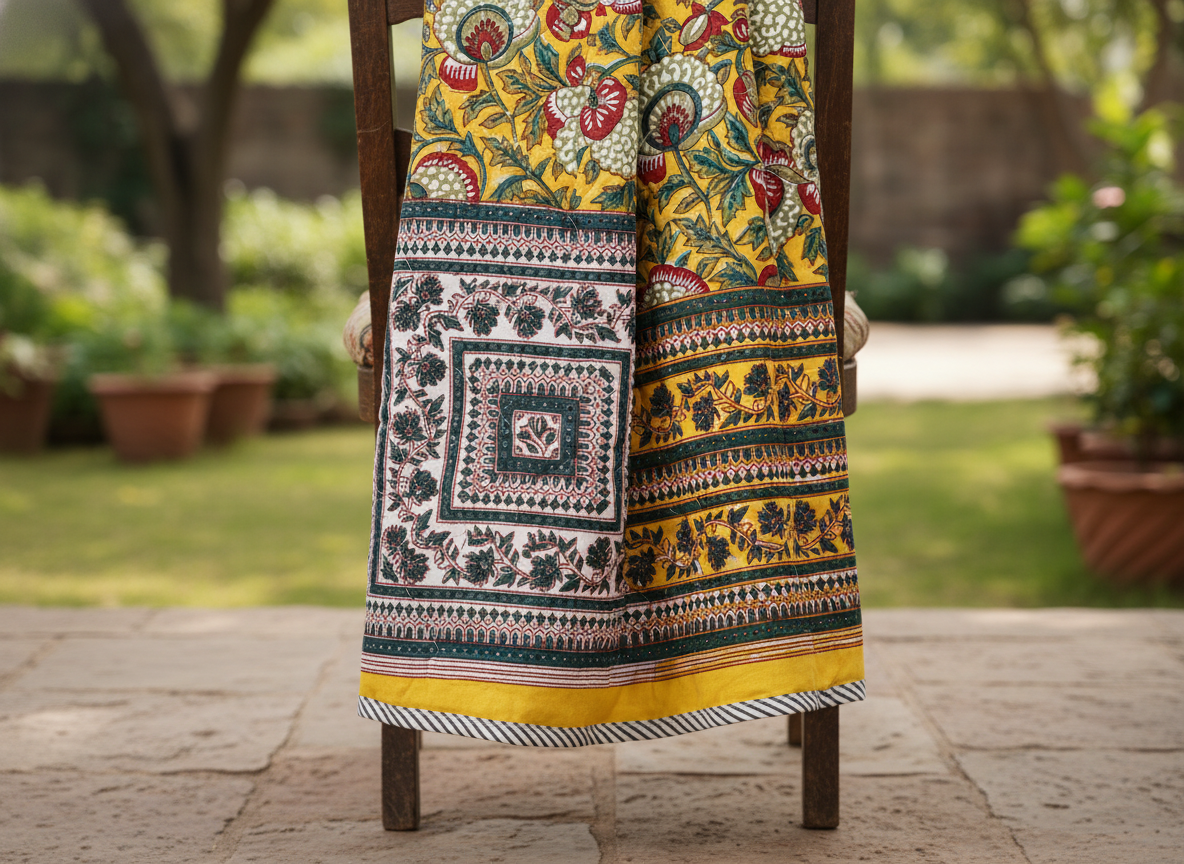 Jaipur Garden Hand Block Printed Mulmul Cotton Reversible Double Dohar