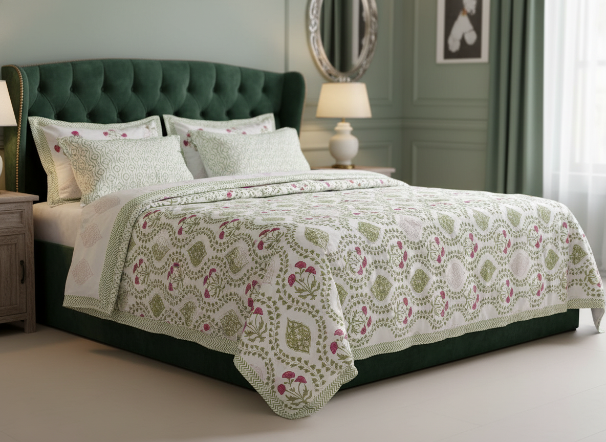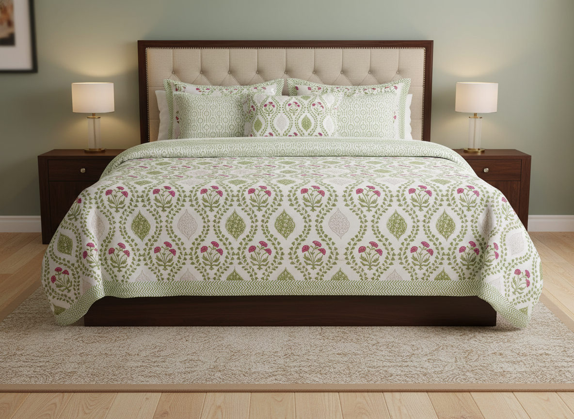 BloomNest Blockprint Percale Cotton King Size Bedsheet