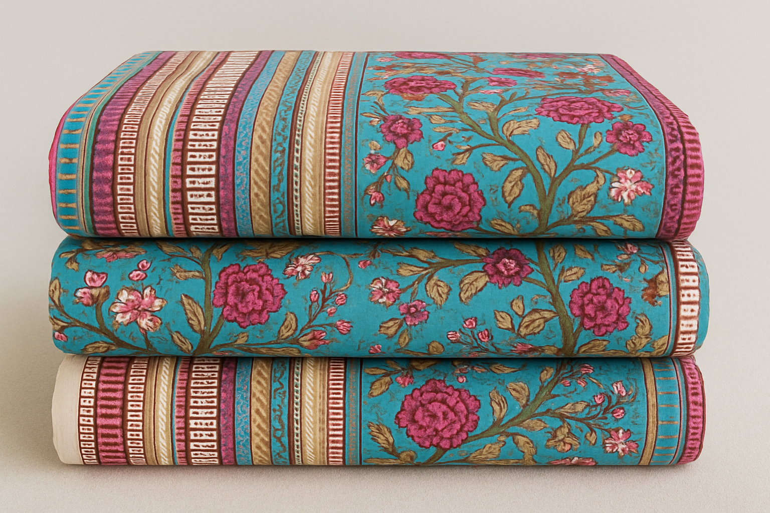 Traditional Jaipuri print single cotton bedsheet with 1 matching pillow cover
