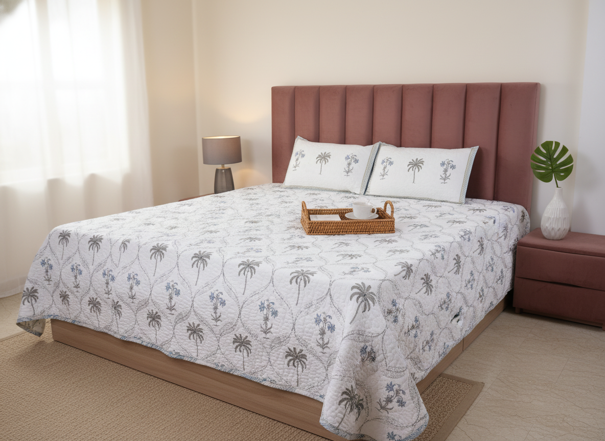 - Elegant hand block printed design on high-quality quilted Mulmul Cotton fabric