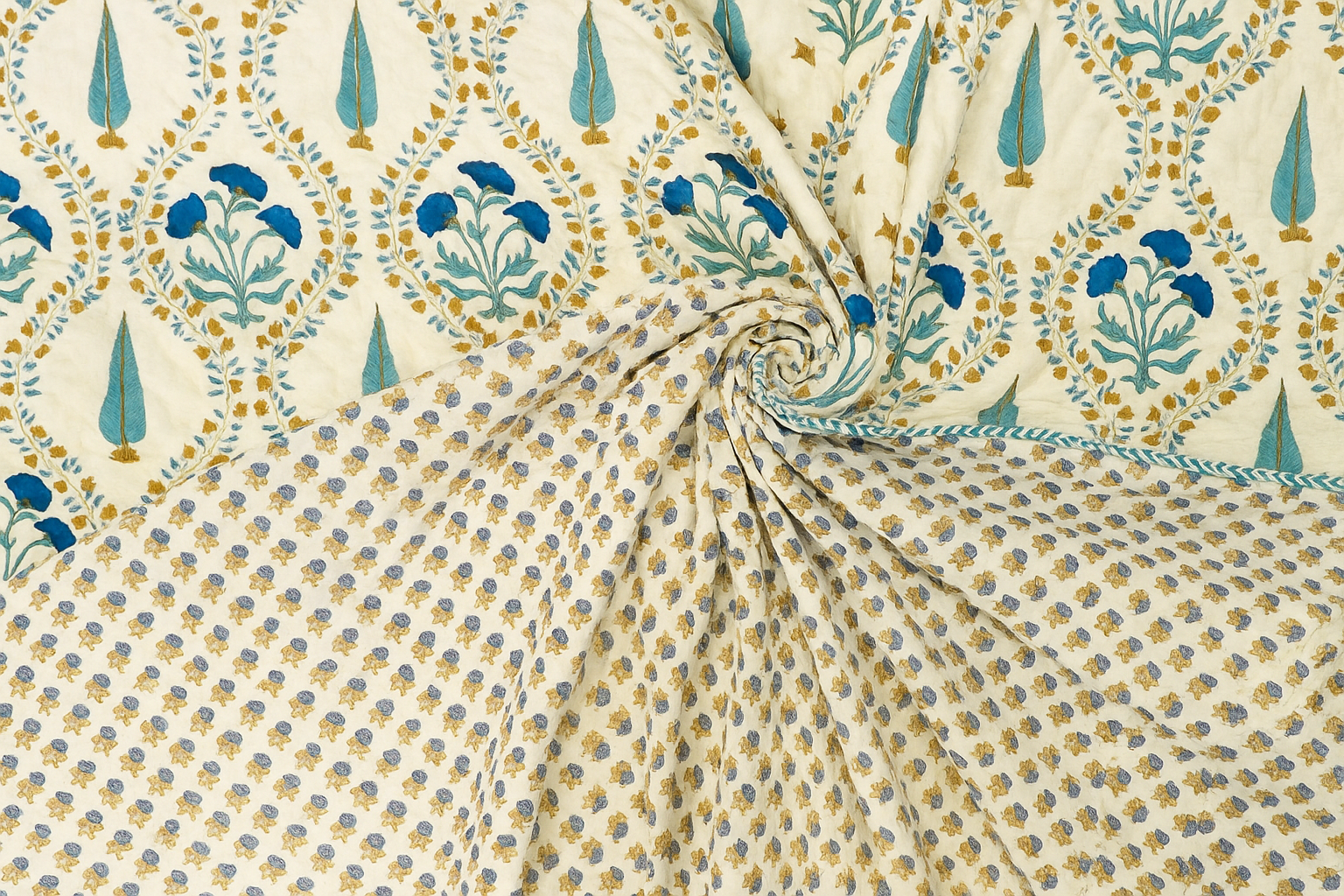 Jaipuri Meadow Hand Block Printed Premium Reversible Quilt
