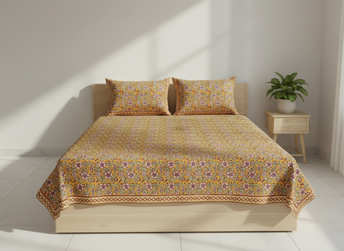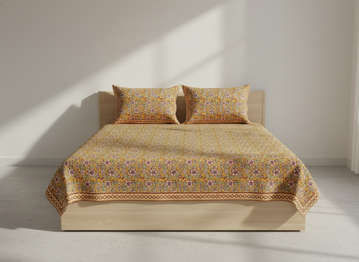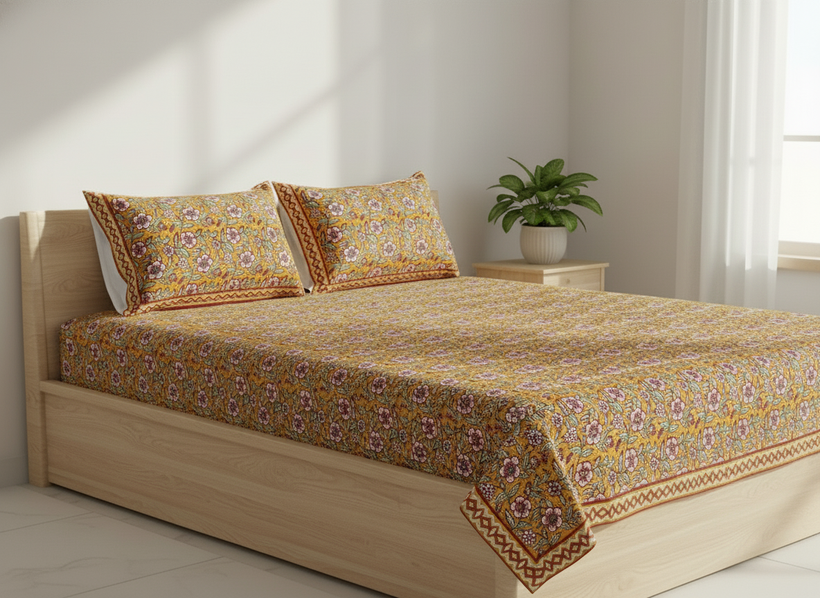 Jodhpur Jewels Hand Block Percale Cotton King Size Bedsheet | 450TC