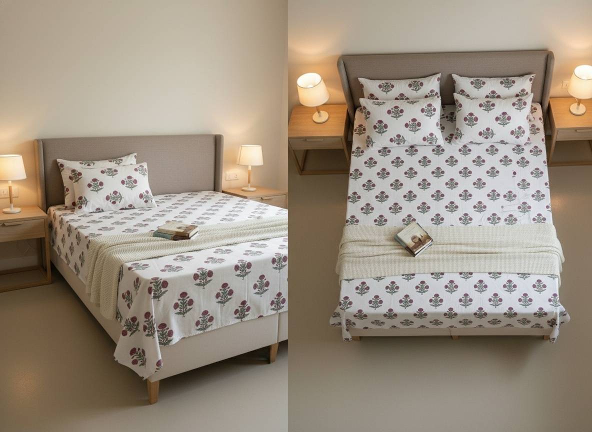 Kashmir Poppy Hand Block Printed Single Bedsheet