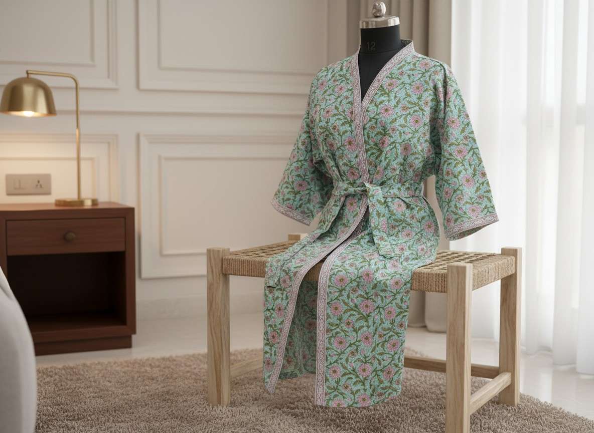 Loomed Luxury Hand Block Printed Unisex Bathrobe - Free Size
