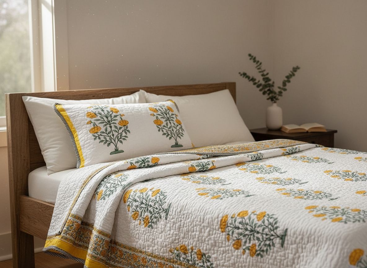 Crafted from premium quilted 100% organic cotton mulmul for unmatched comfort and breathability