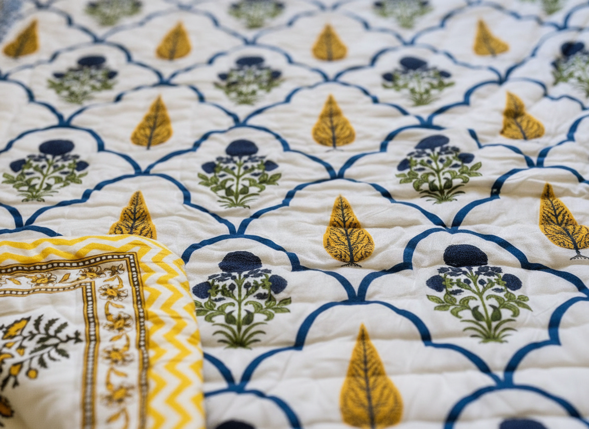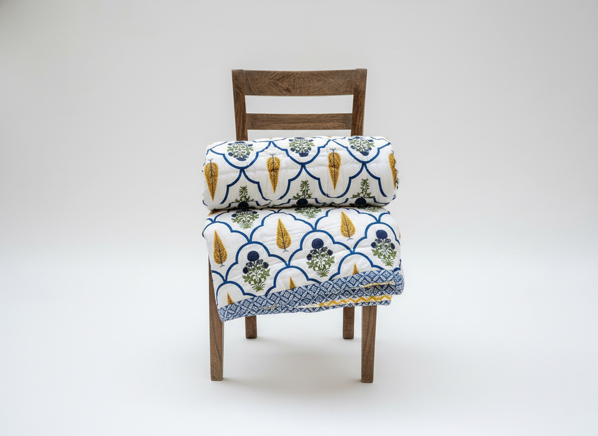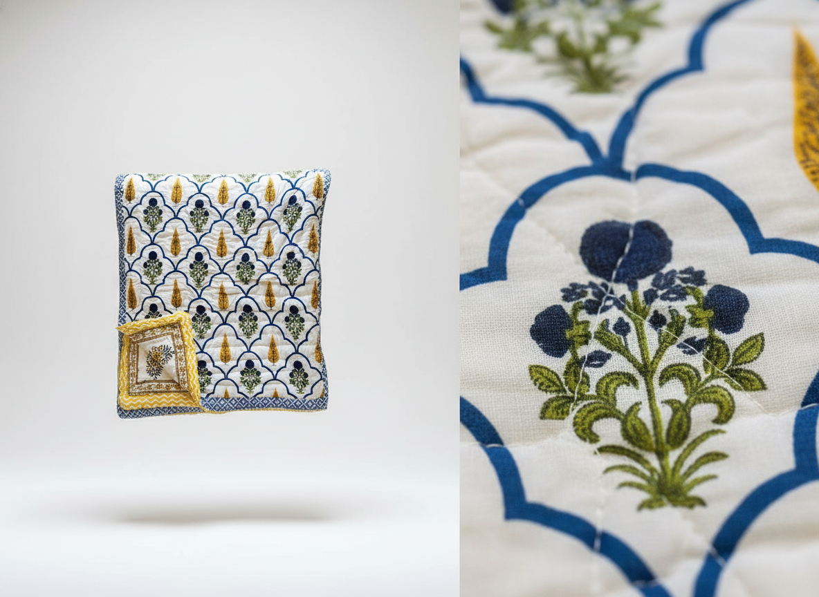 Showcasing intricate and exclusive hand block printed motifs, each element reflects the art and tradition of skilled Indian artisans.