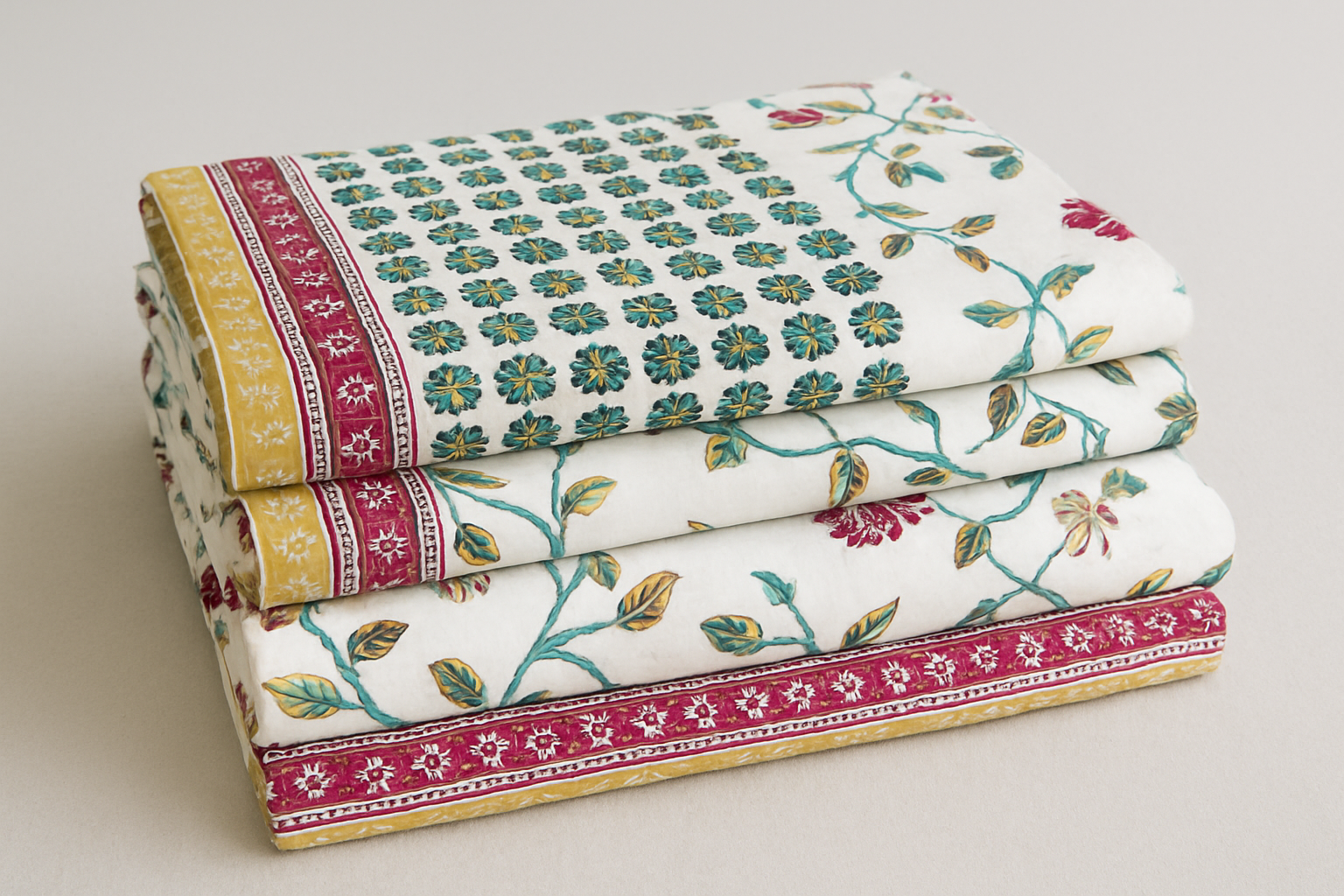Traditional Jaipuri print single cotton bedsheet with 1 matching pillow cover