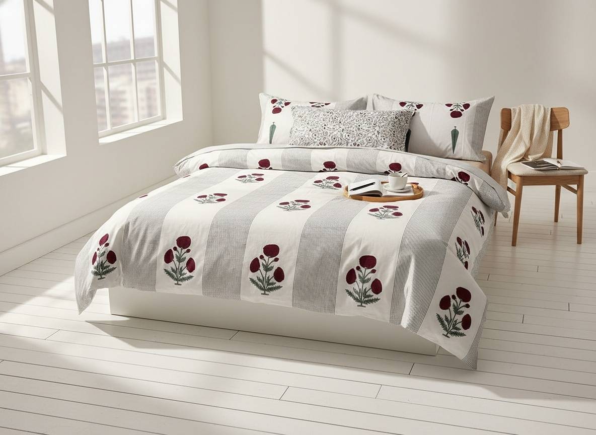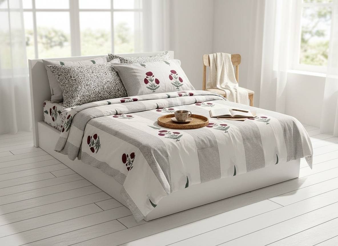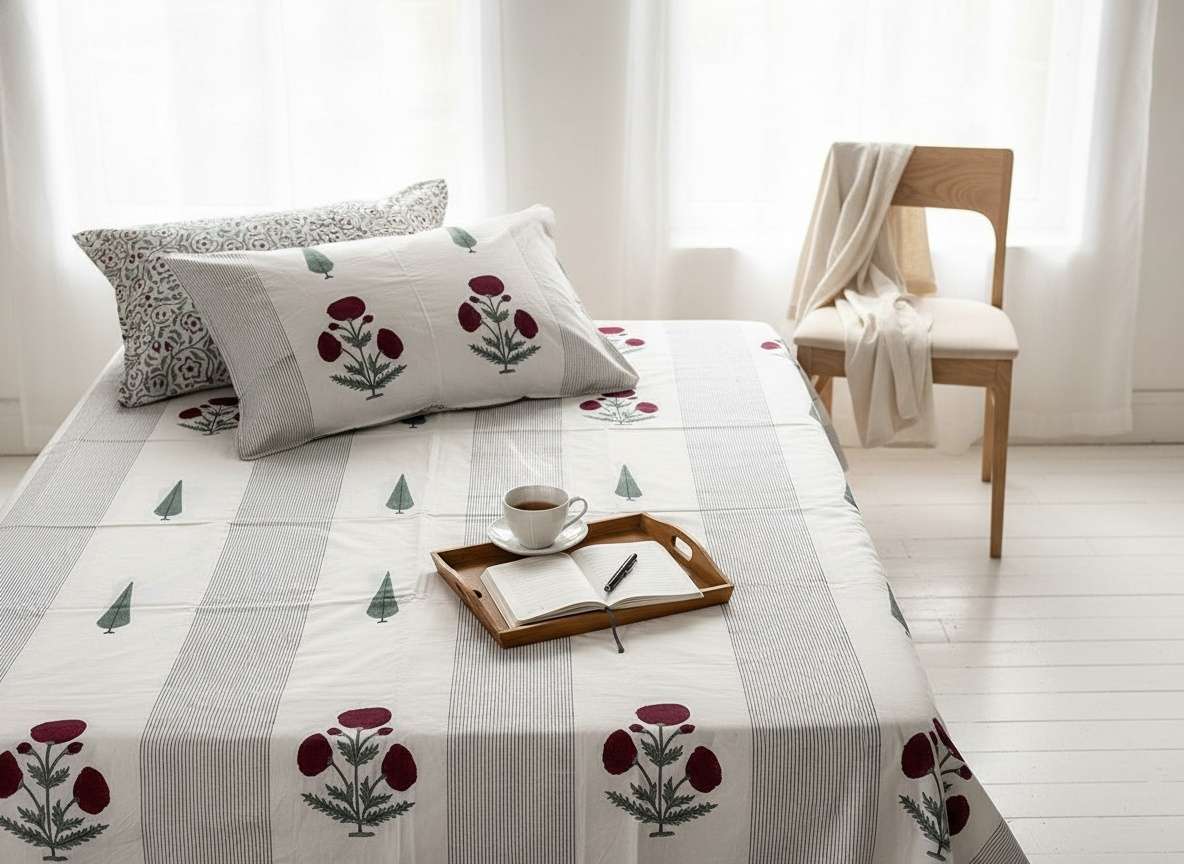 Raaga Blockprint Percale Cotton King Size Bedsheet | 450 TC