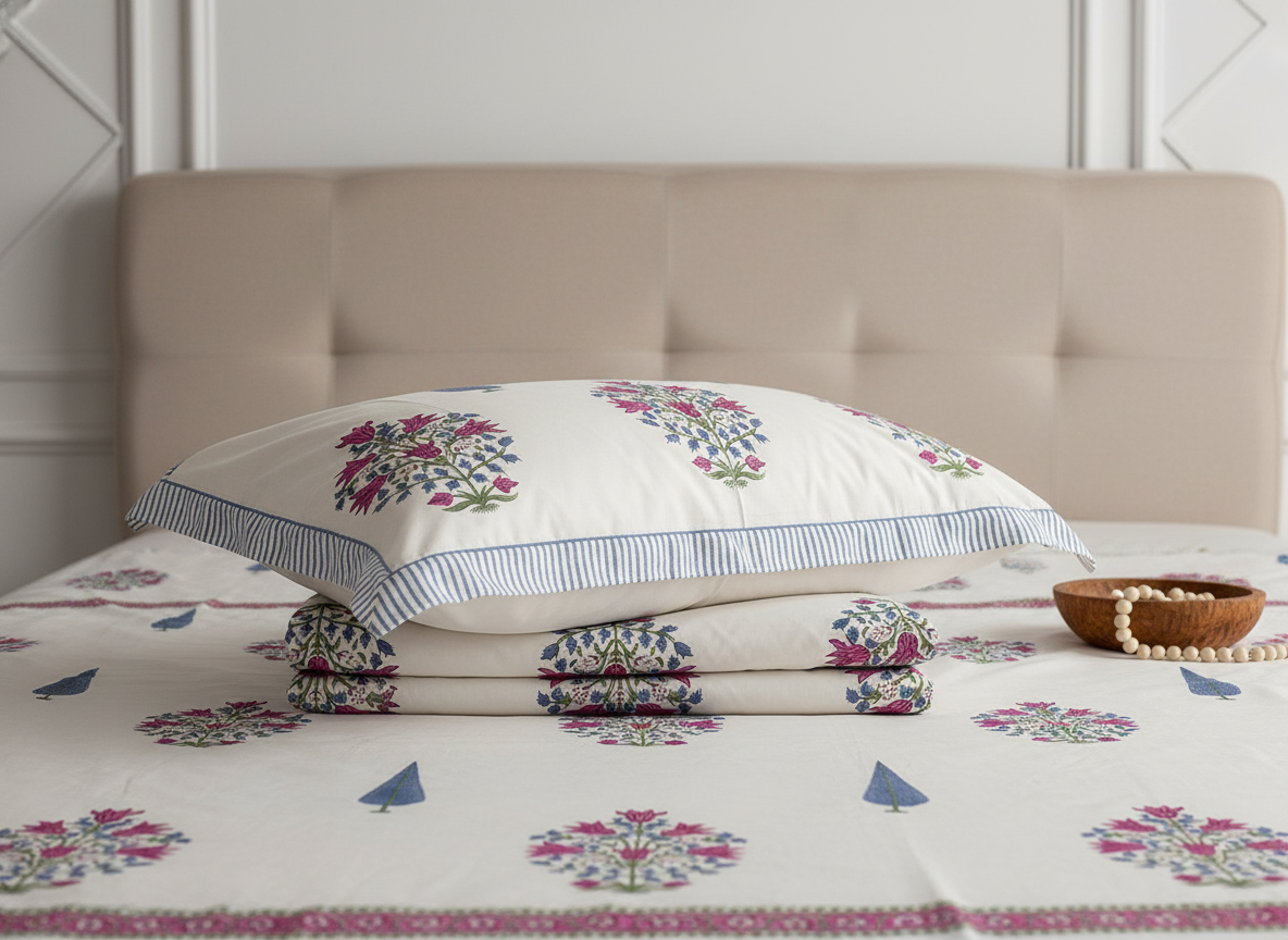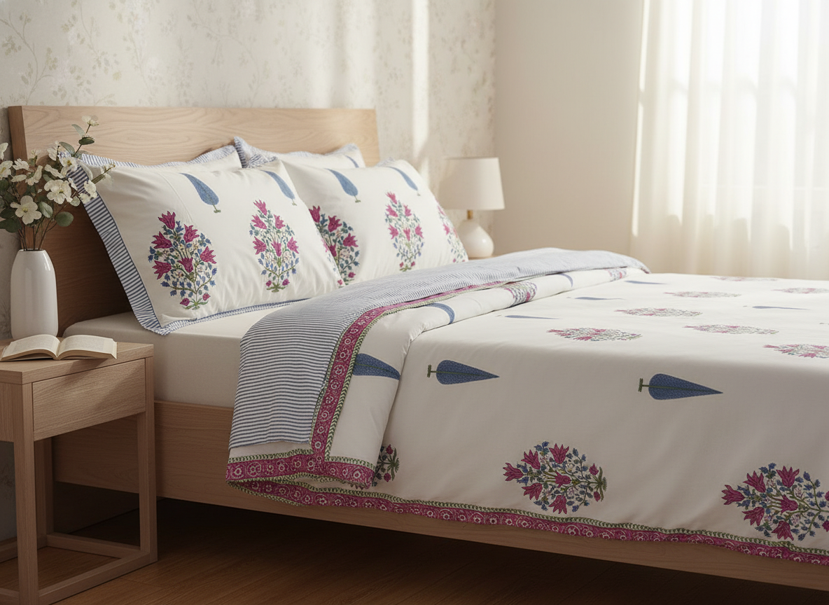 Rangoli Hand Block Printed Percale Cotton King Size Bedsheet