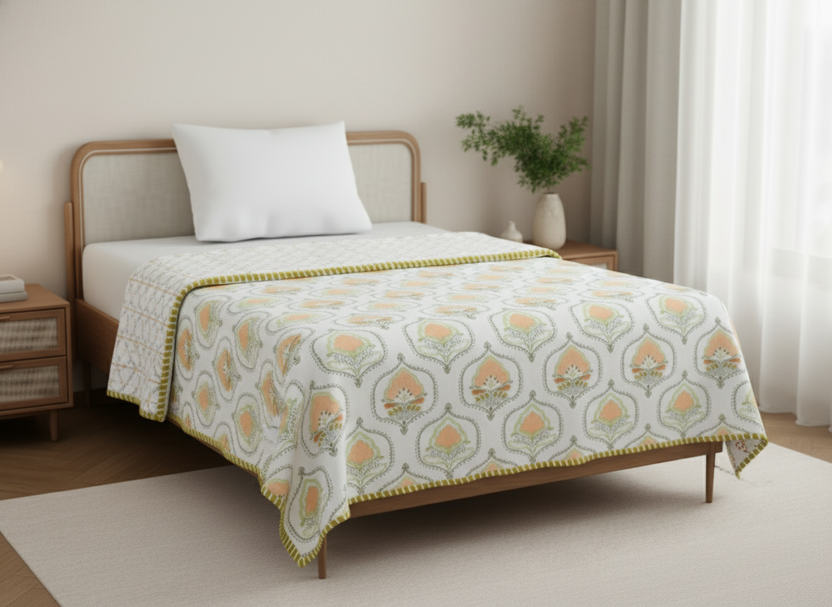 Shantam Floral Mulmul Cotton Reversible Single Dohar