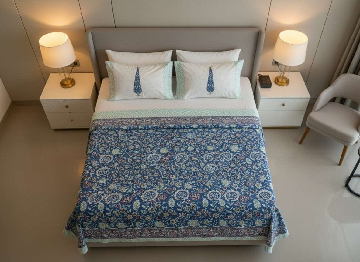 Exquisite hand block printed design by Jaipur artisans