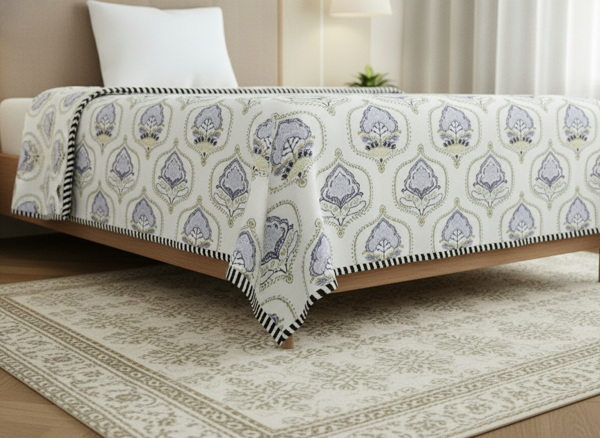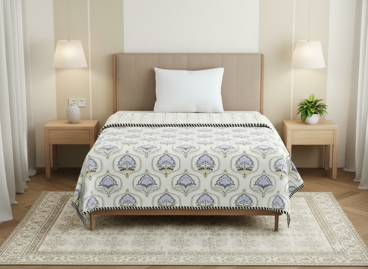 Madhuban Blue Jaal Mulmul Cotton Reversible Single Dohar