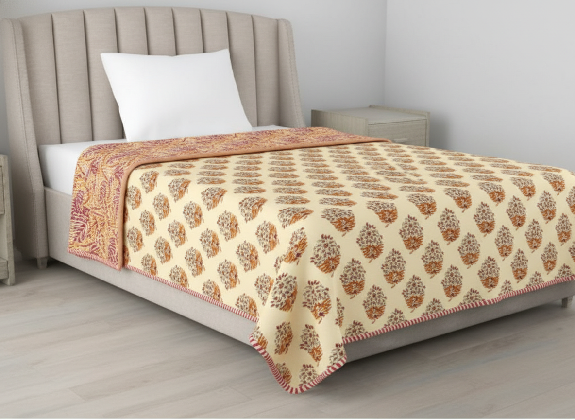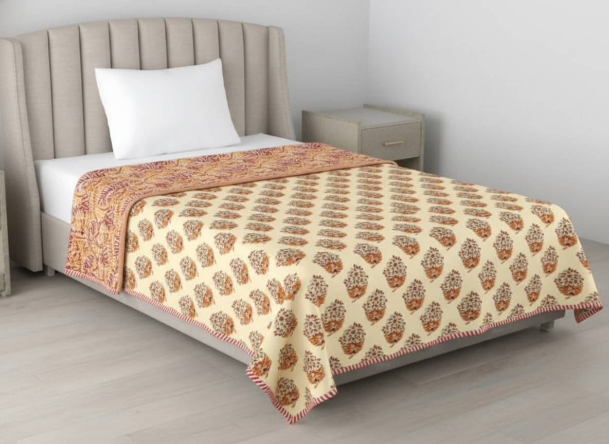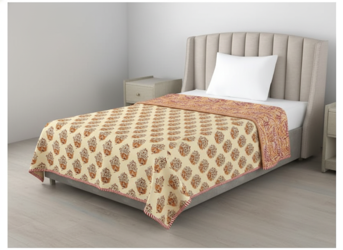 Yellow Jaal Mulmul Cotton Reversible Single Dohar